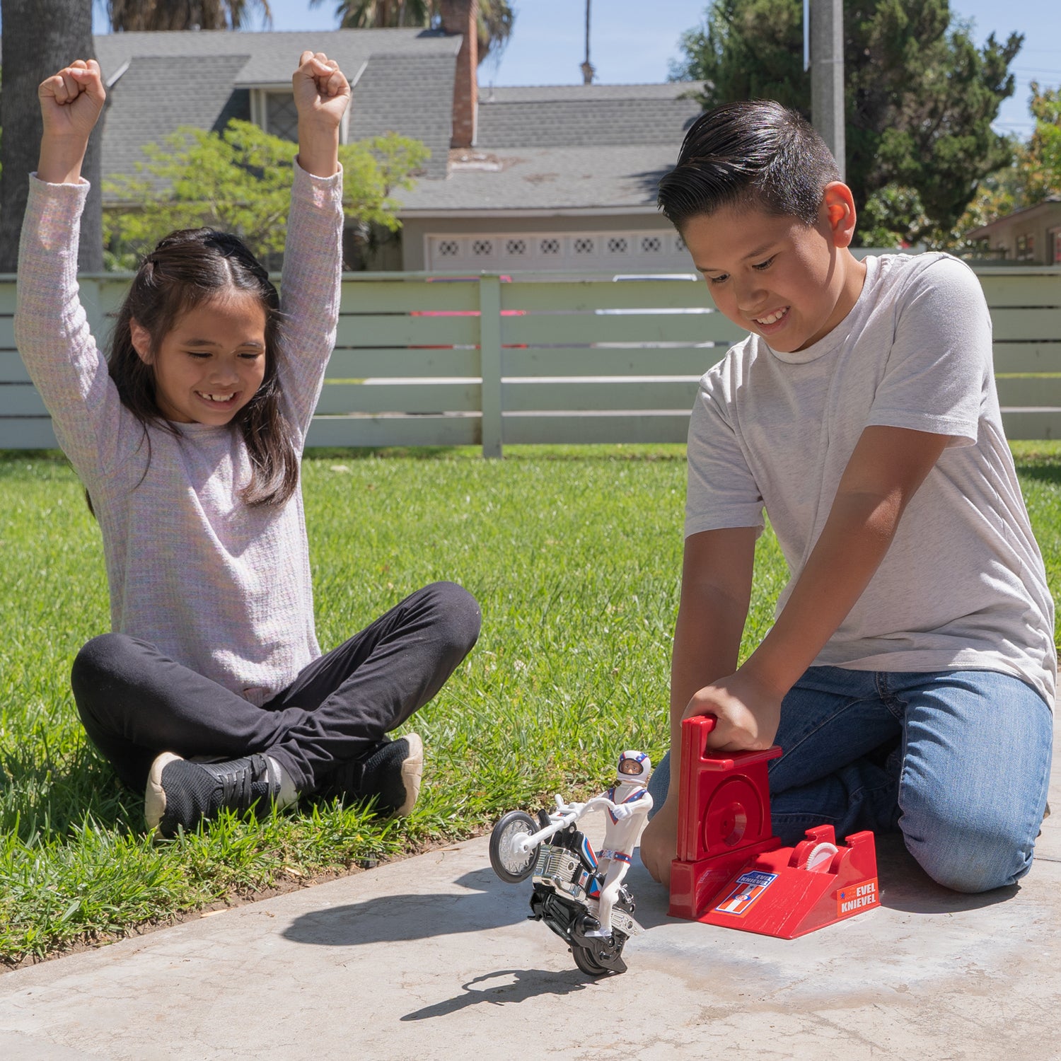 Evel Knievel the man, the myth, the legend is back with this nostalgic gem. The original 1970's version of the super-powerful wind-up gear stunt bike is coming back into production for a limited time. Put your phones down and have some serious fun outside with the only official vintage stunt cycle and see how far you can get it to roll, jump and flip! The Evel Knievel Stunt-Cycle Toy is back in production and faster than ever with an enhanced gear system to make him go faster and jump higher.