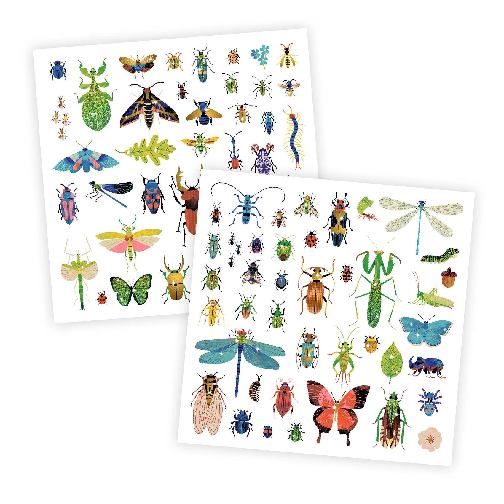 A pocket with 160 microcosm/themed stickers. Butterflies, grasshoppers, insects and more. Arrange the stickers however you like to create beautiful idyllic scenes, or use them to decorate whatever you want! 160 stickers to stick wherever you like. 2 different sheets, each with 2 copies so you can reuse your favourite stickers. Use them as they are or to complete your drawings. FSC® certified card packaging.