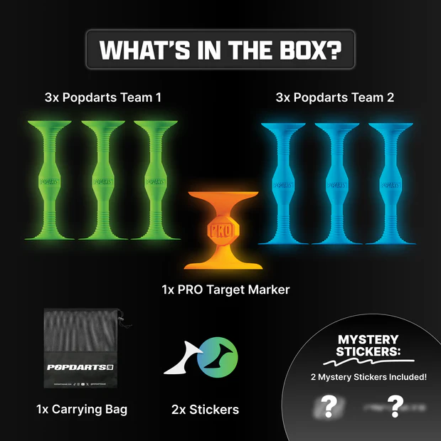 Light up your game with the Popdarts Pro Pack (Glow)! These glow-in-the-dark Popdarts add a whole new dimension of fun, letting you keep the competition going day or night. Perfect for players who already own a Popdarts board set and want to expand their collection with eye-catching darts.
