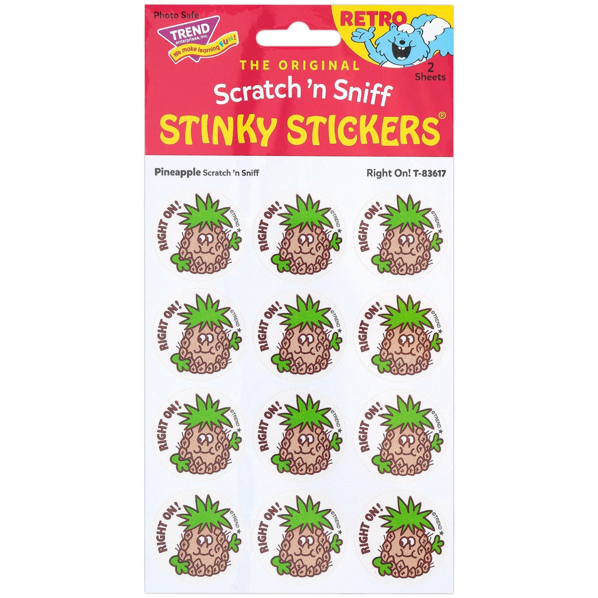 Right On! - Pineapple-Scented Retro Scratch 'n Sniff Stinky Stickers, 24 Stickers