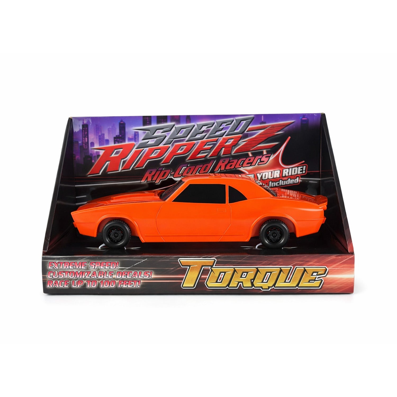 Start your engines and rip into high speed action with Speed Ripperz™ Torque the rip cord powered muscle car built for pure racing excitement. Pull the rip cord and watch Torque race up to 100 feet across the floor with muscle powered speed.