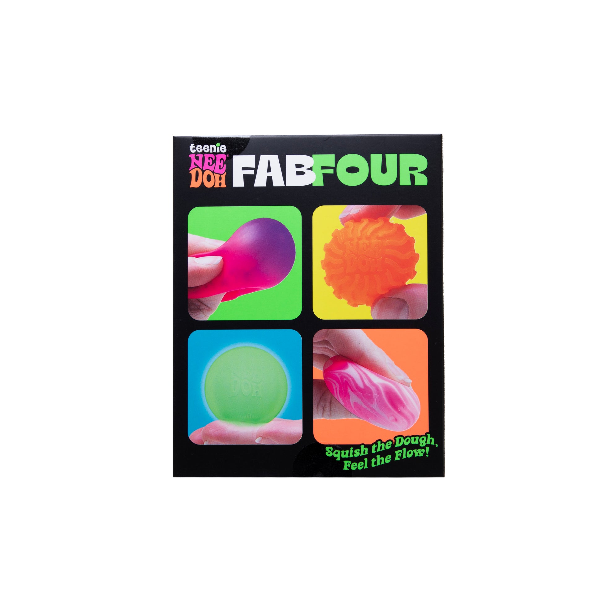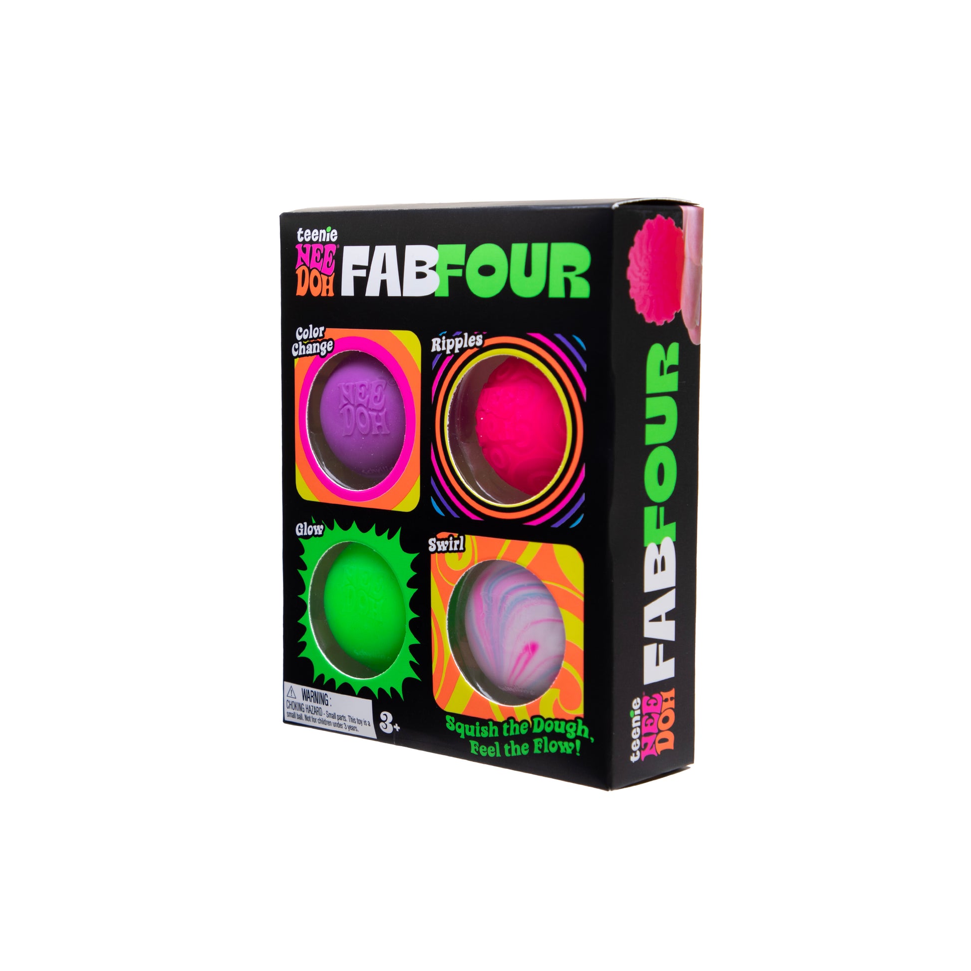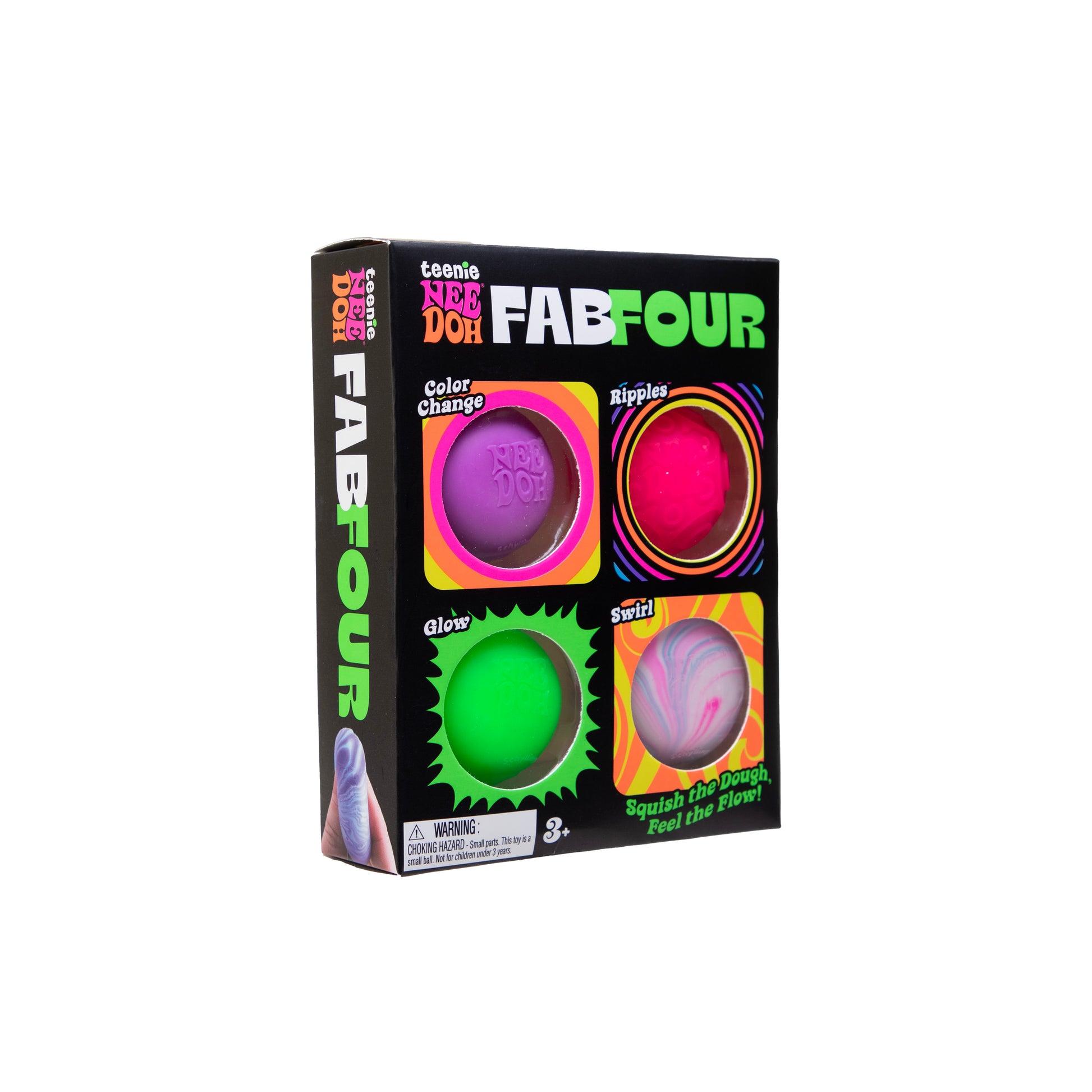 The Teenie NeeDoh Fab Four is a must-have set of four tiny, doh-filled squish balls that deliver big-time sensory satisfaction. Each Teenie NeeDoh offers the classic, groovy squish kids and adults love — but in a super portable size! Perfect for pockets, backpacks, party favors, or classroom rewards.